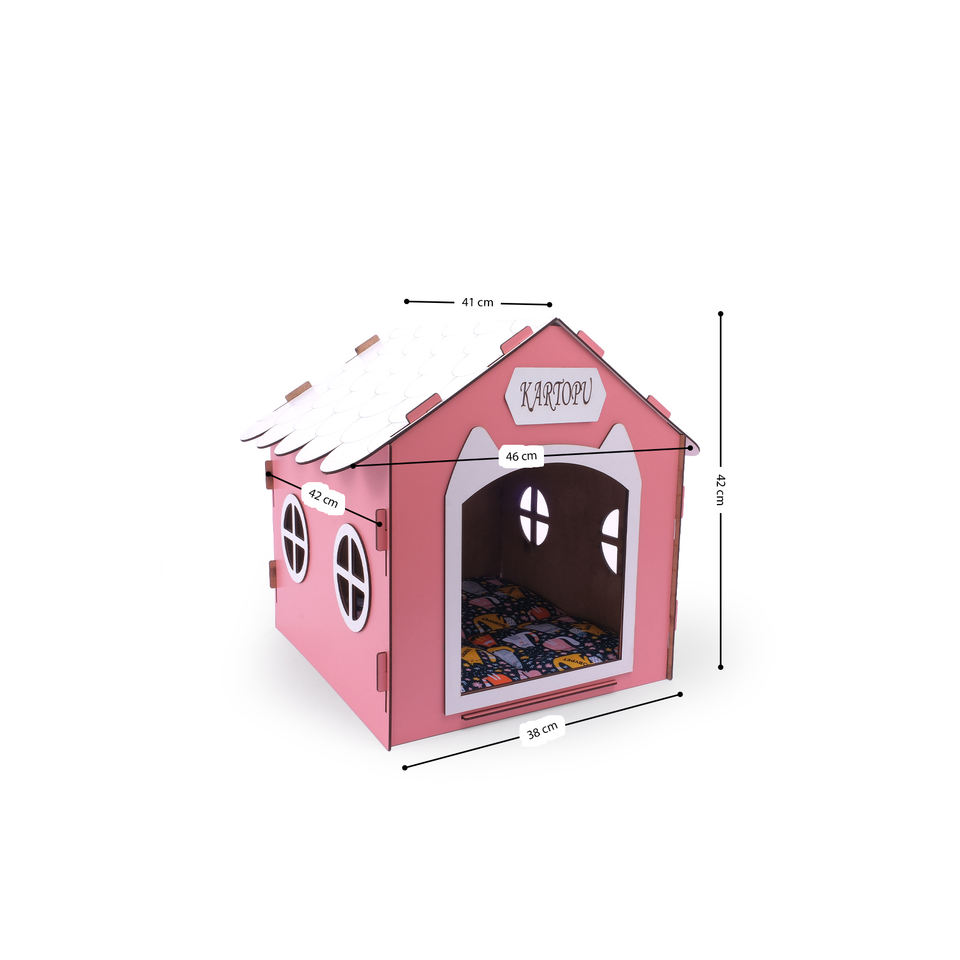 Custom Name Printed Pink Wooden Cat House Decorative Cat Kennel Furniture From Turkey