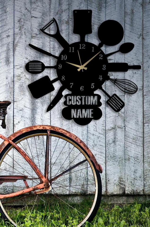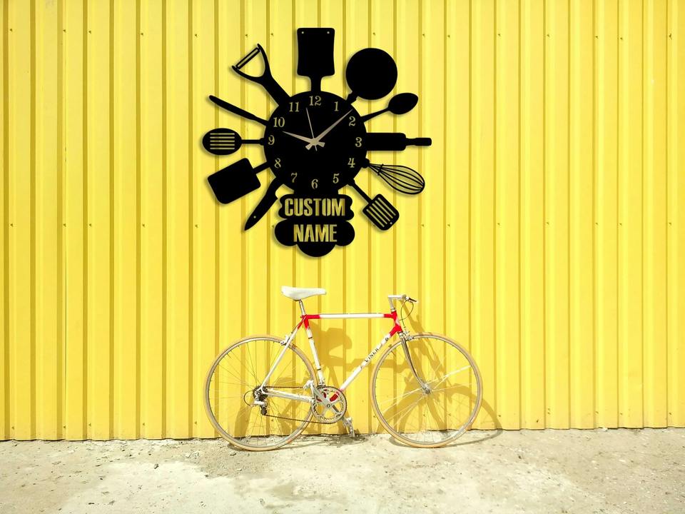 Horloge murale personnalisée avec design cuillère-fourchette, idéale pour la cuisine et la salle à manger, rehausse l'ambiance amusante et le look intérieur moderne, en provenance d'Inde.