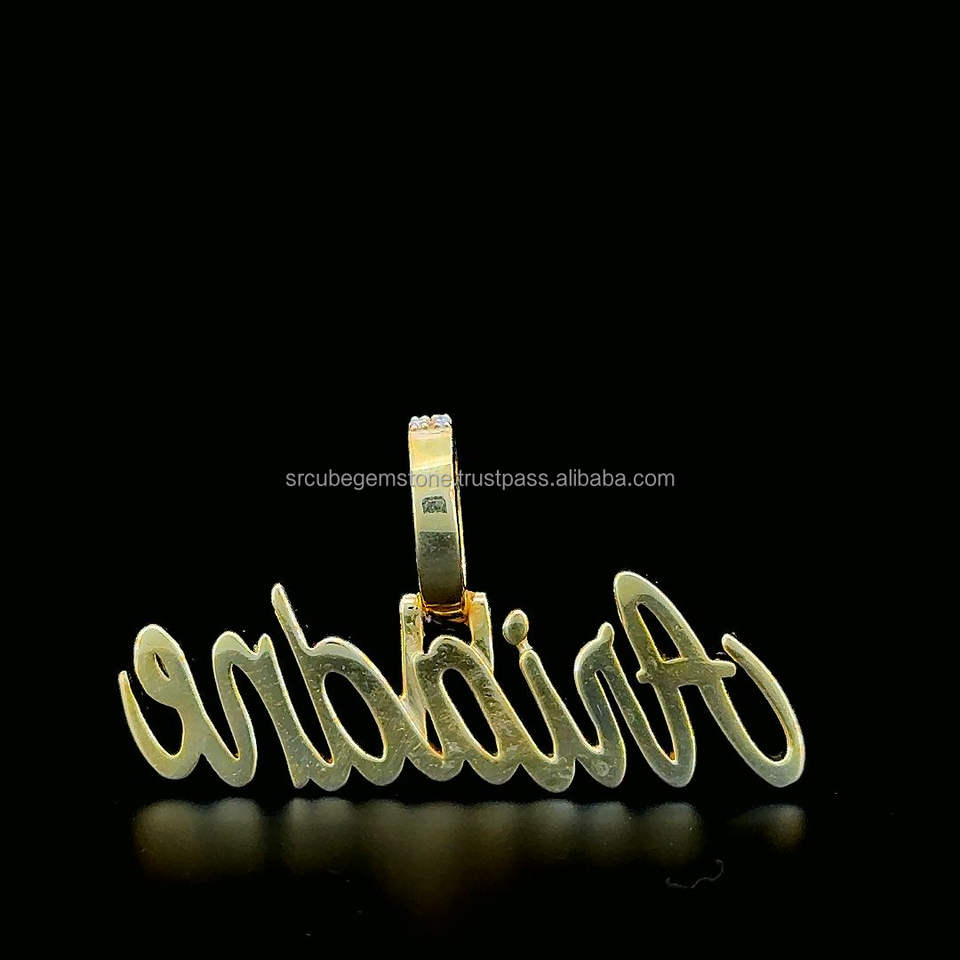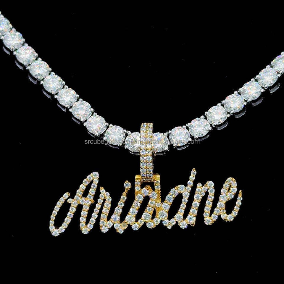 Collier plaque signalétique personnalisé Moissanite pendentif lettre majuscule cursive pendentif plaque signalétique plaqué or personnalisé