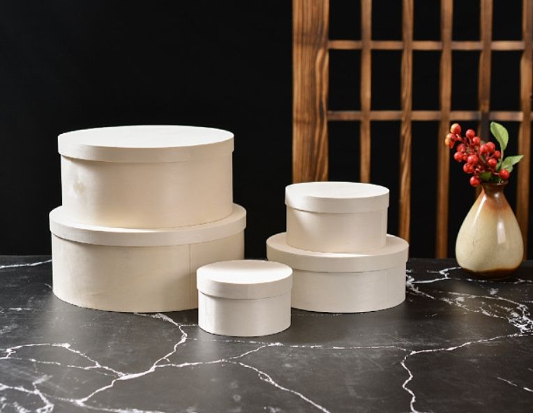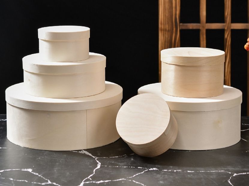 Avantage:Boîtes en bois naturel lisse, rondes sur mesure avec couvercle, boîte à gâteau en bois