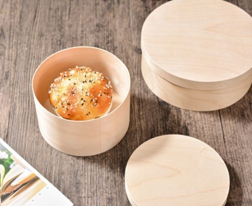Boîte à gâteau jetable en bois naturel personnalisée avec couvercle rond pour les occasions de fête et la vaisselle