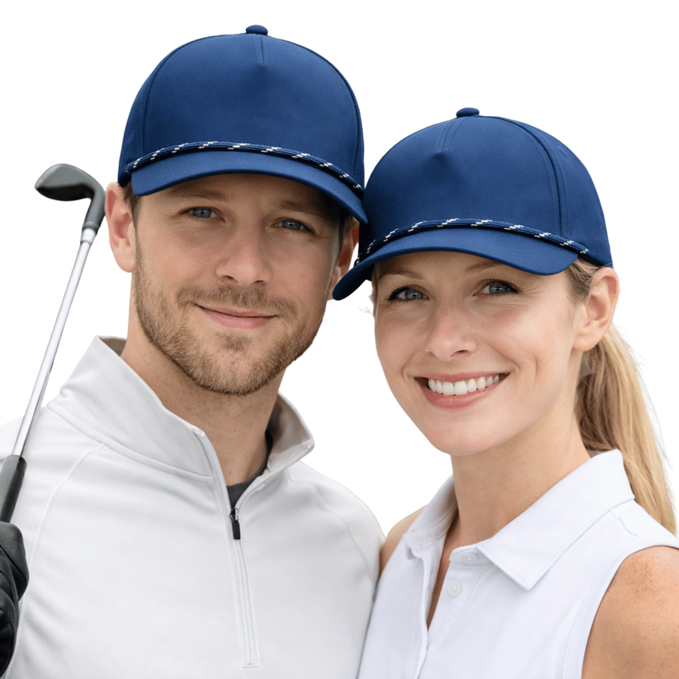 Casquettes Snapback de Golf Personnalisées Bleu Marine à 5 Panneaux, Visière Plate, Imperméables, Découpe Laser, Performance Extérieure pour Homme et Femme