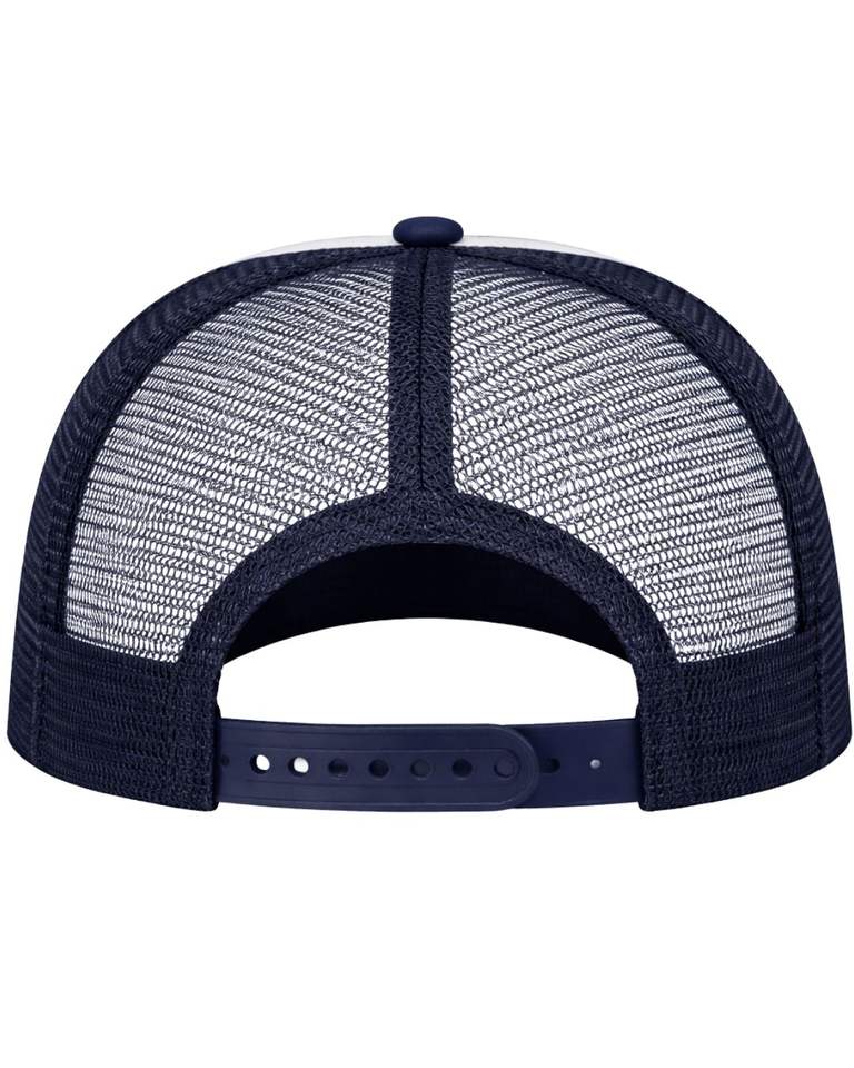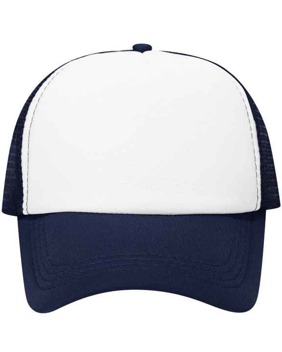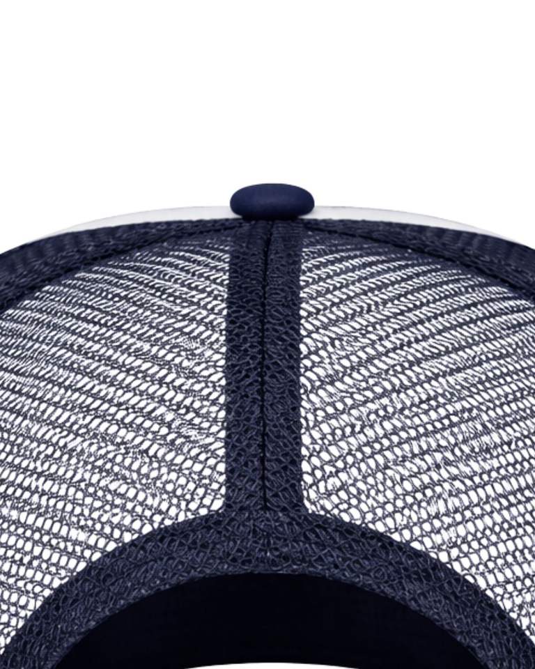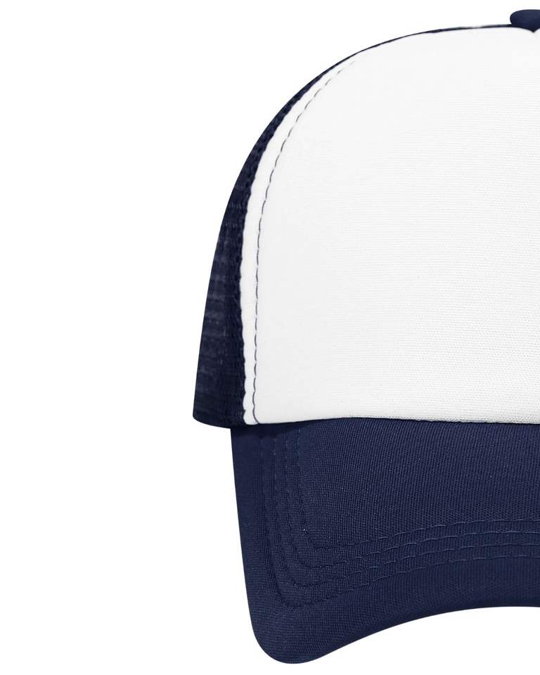 Casquette de camionneur personnalisée bleu marine et blanc, dos en mesh, fermeture snapback réglable, respirante, en polyester, devant en mousse, logo personnalisé, casquette de baseball