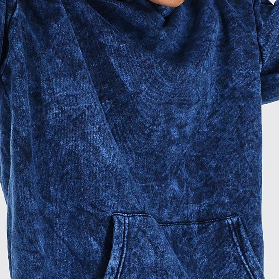 Sweat-shirt à capuche surdimensionné bleu marine personnalisé, lavage à l'acide, pour homme, 100% coton molletonné, pull-over décontracté, streetwear, hiver, OEM ODMXL