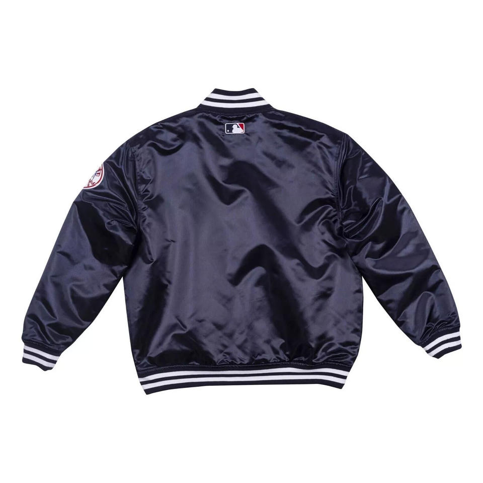 Custom Navy Blue Satin Varsity Jacket Men White Logo Bomber Jacket Wholesale Letterman Baseball Uniform Sportswear