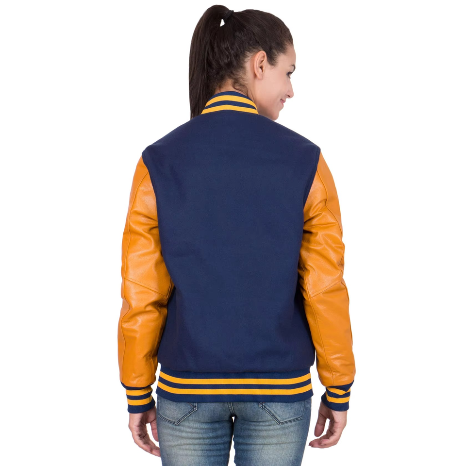 Blouson universitaire jaune bleu marine personnalisé blouson aviateur à manches en cuir pour femmes Vente en gros uniforme universitaire Streetwear OEM