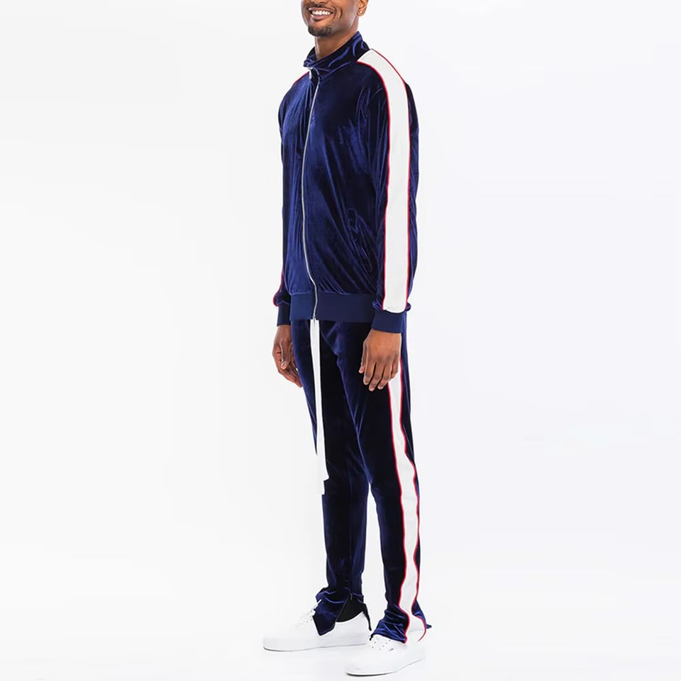 Ensemble de survêtement évasé en velours bleu marine personnalisé pour femme, avec sweat à capuche et pantalon de survêtement à jambes larges, vente en gros, fabricant, ensemble de sport en velours vierge en gros