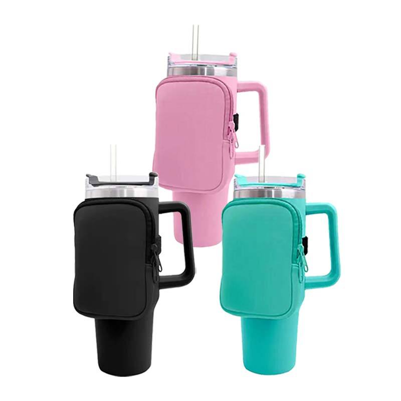 Pochette de gobelet polyvalente en néoprène personnalisée avec fermeture éclair pour accessoires de gymnastique porte-sac avec sangle pochette recyclable portefeuille de poche