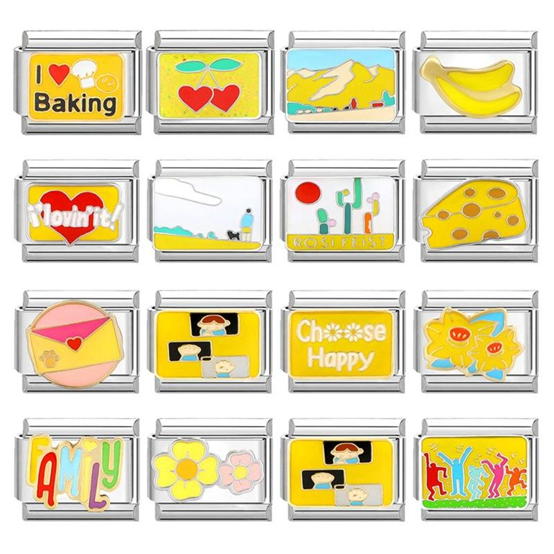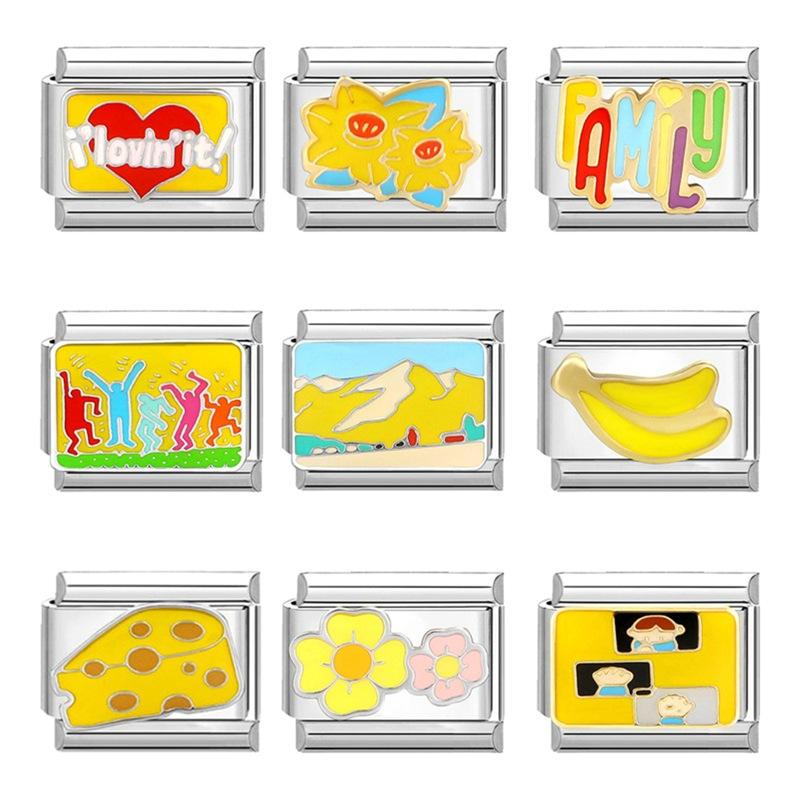 Bracelet à breloques italien de nouvelle série jaune mignon personnalisé en acier inoxydable paysage saison bricolage italien