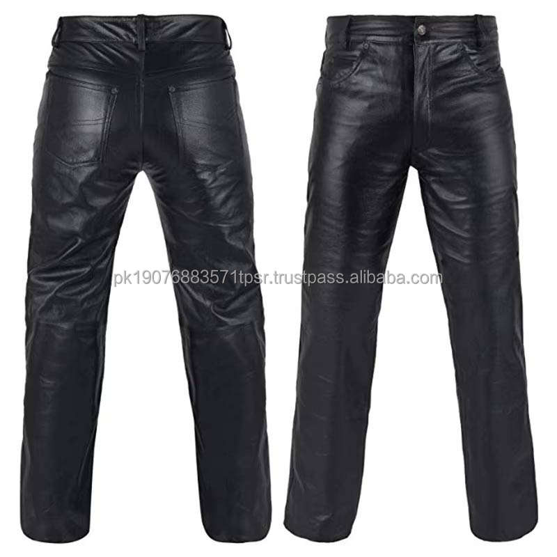 Pantalon en similicuir PU noir pour homme, coupe slim, extensible, style motard, nouveau design personnalisé