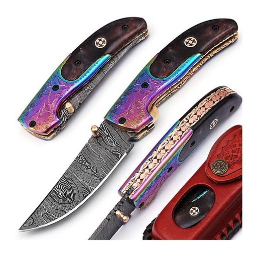 Couteau pliant artisanal en acier Damas au design optimal avec manche en os, personnalisable DIY et OEM, pour usage extérieur et camping