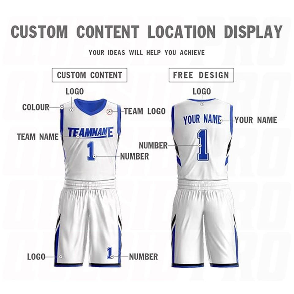 Nouvelle conception personnalisée, uniforme de basket-ball sans manches de haute qualité, antibactérien, blanc et bleu, vêtements de sport, maillot de basket-ball sublimé