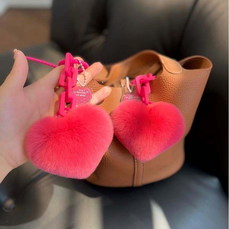 Porte-clés personnalisé en forme de cœur en peluche avec pompon, en fausse fourrure douce, pour cadeaux et accessoires mignons en gros