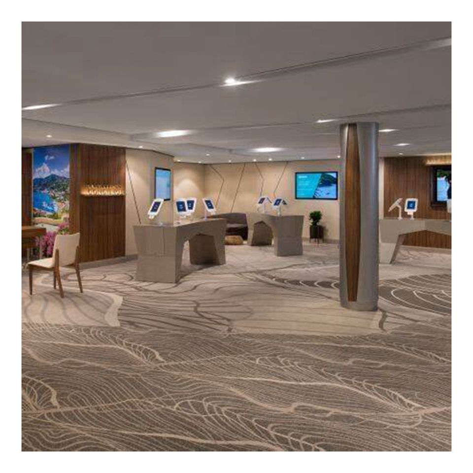 Le tapis d'Axminster d'hôtel ou le tapis de style de casino est emballé dans Rolls avec le poly-sac, 3.66 ou 4 mètres, un 20 'FCL peut charger 23-25 Rolls, un 40' le QG peut charger 70-75 Rolls.
