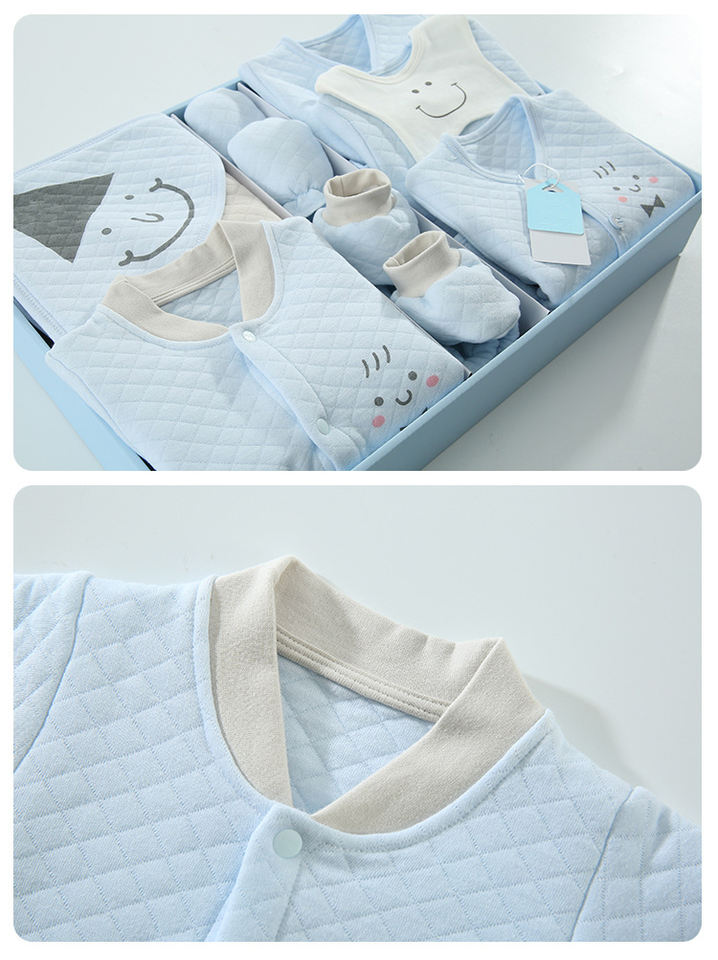 Coffret cadeau pour nouveau-né personnalisé, ensembles de vêtements d'automne en coton pur, 18/21/23 pièces, respirant, séchage rapide, en bleu