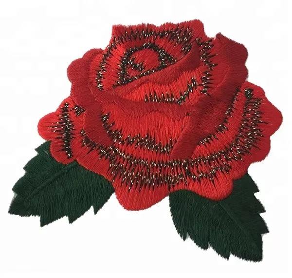 Broderie chenille informatisée personnalisée sans minimum de commande, entièrement brodée, fil métallique, à repasser, patch rose rouge pour jeans