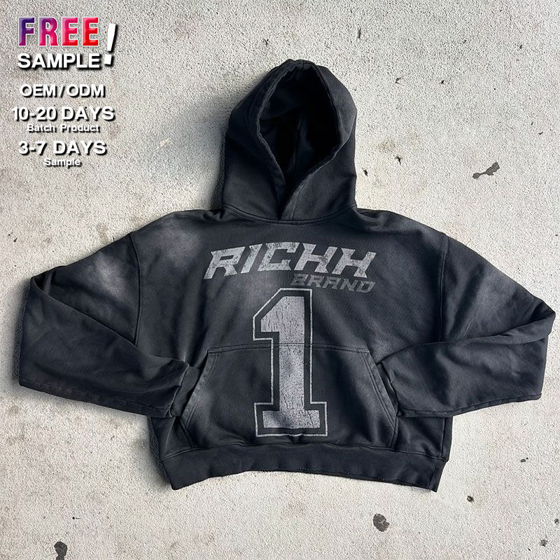 Sweat à capuche personnalisé sans cordon, en polaire épais pour l'hiver, avec logo imprimé numériquement et en sérigraphie, finition délavée à l'acide