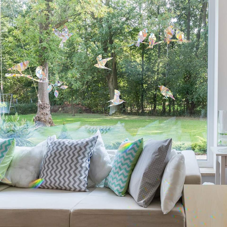 Fenêtre arc-en-ciel non adhésive personnalisée s'accroche pour les décalcomanies de fenêtre en verre pour éviter les collisions d'oiseaux autocollant anti-collision pour oiseaux de fenêtre