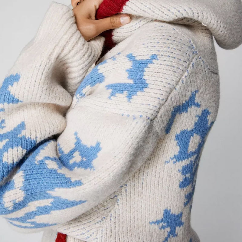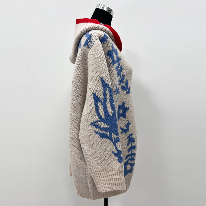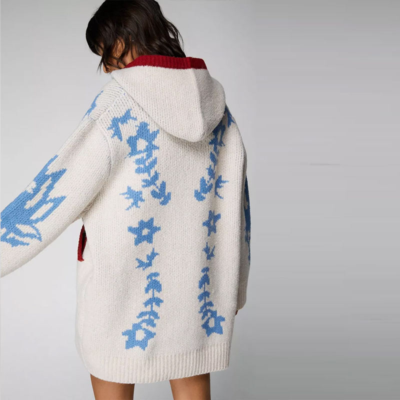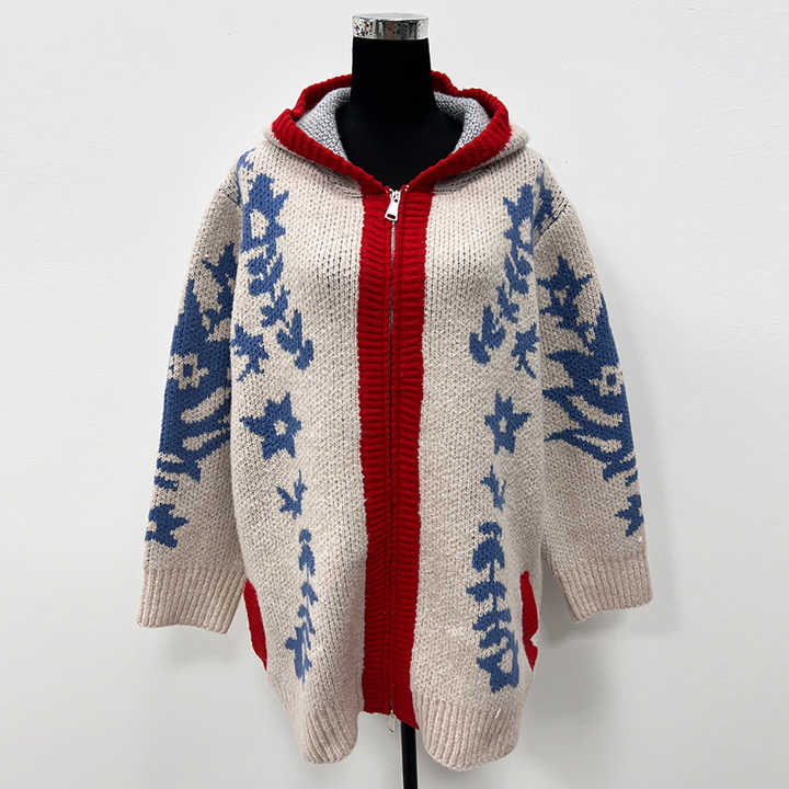 Manteau personnalisé de style nordique à fermeture éclair Y2K grande taille pour femmes pull cardigan surdimensionné à motif de feuilles de créateur pour femmes