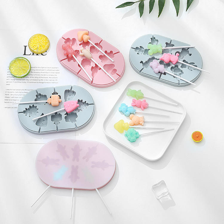 Moule à sucettes en silicone en forme d'animaux et de fruits fantaisie, moule à glace, moule à sucettes glacées avec bâtonnet