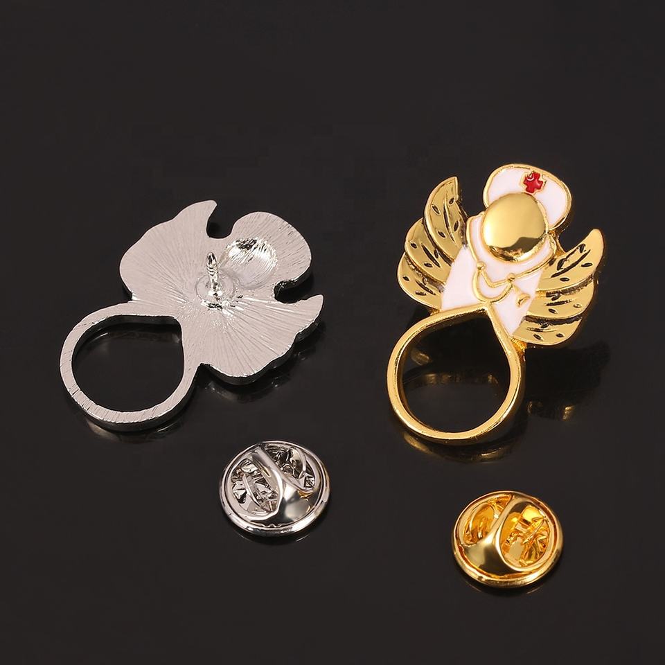 Broche ange infirmière personnalisée avec stéthoscope, émail or et argent sur alliage pour mariage, bijoux pour enfants, accessoires d'infirmière