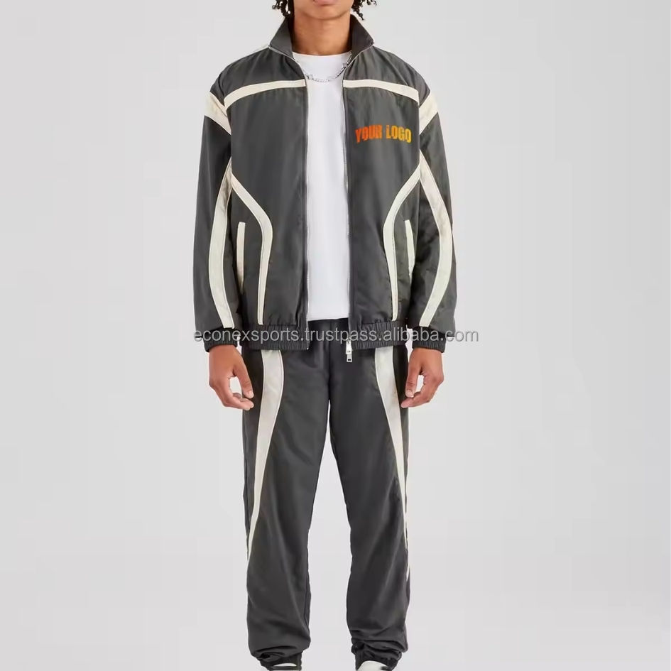 Pantalon de jogging à fermeture éclair pour hommes personnalisable veste coupe-vent écologique survêtement motif solide patchwork en nylon personnalisable