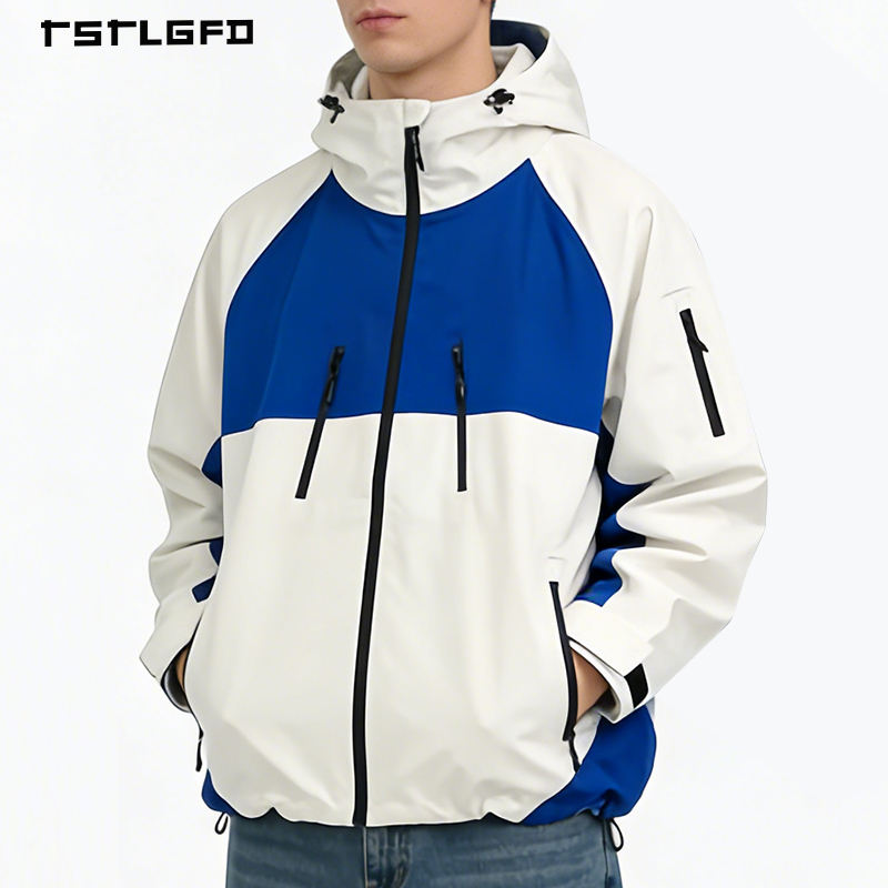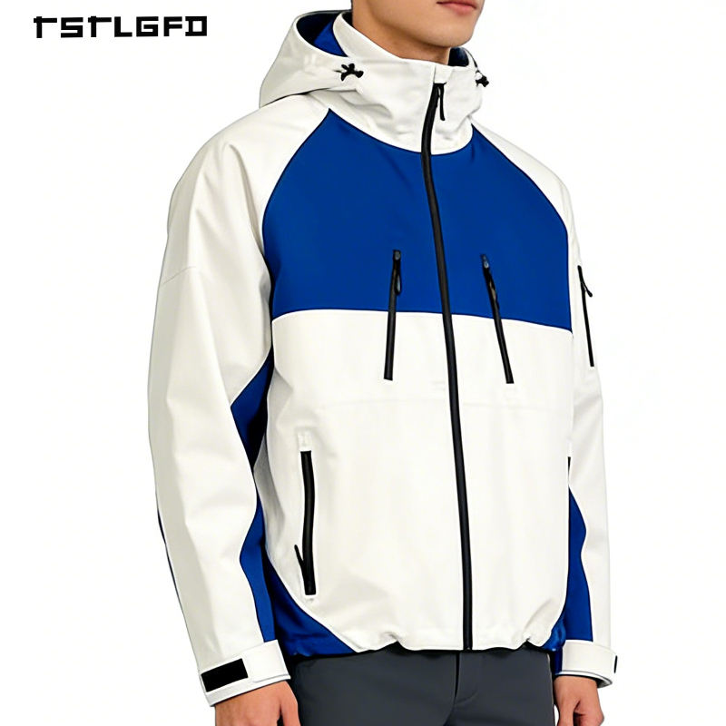 Blouson universitaire personnalisé en nylon épais imprimé pour homme, col montant, à capuche, imperméable, coupe-vent, fermeture éclair frontale, avec logo