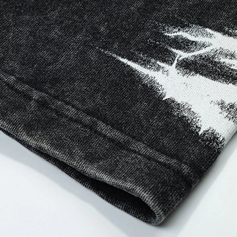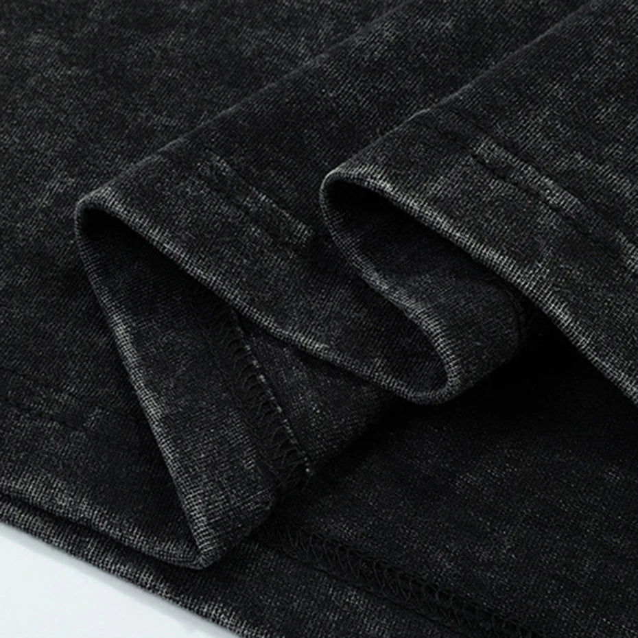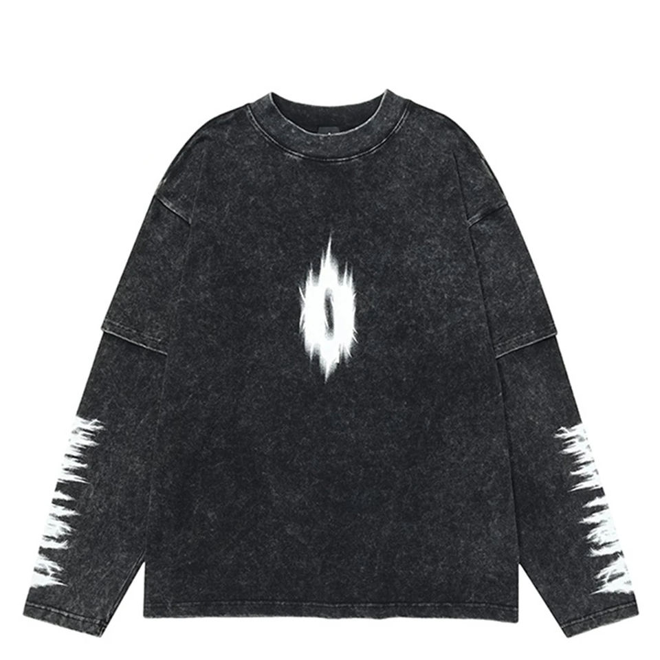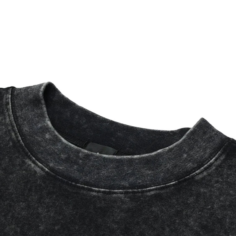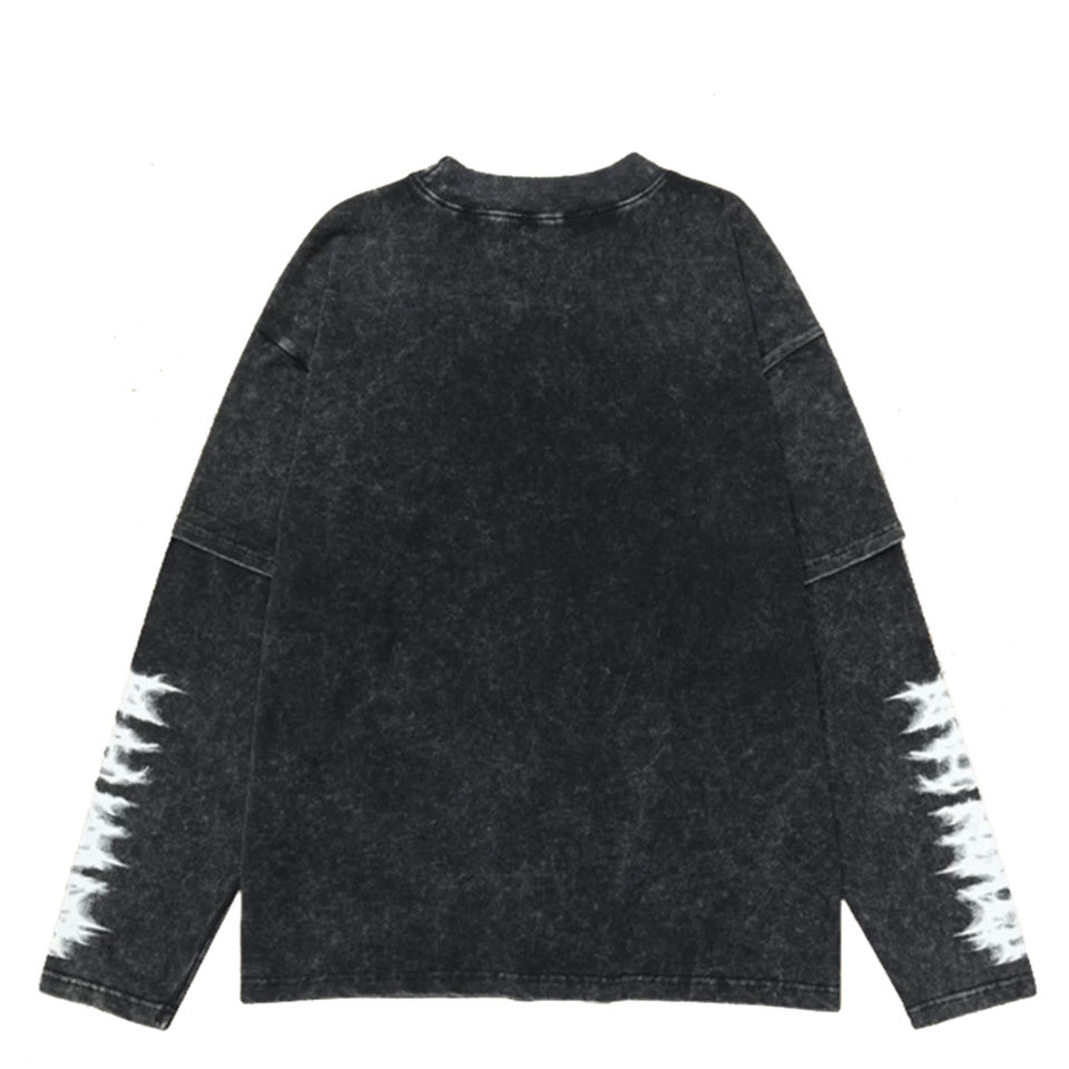 T-shirt personnalisé col rond 260 grammes coton bambou streetwear délavé à l'acide double couche manches longues coupe oversize écoresponsable 2-en-1 sérigraphié