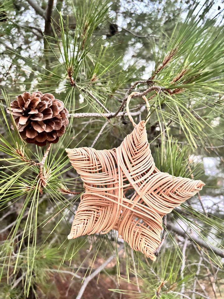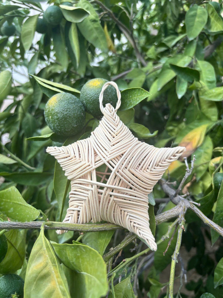 Tissage en rotin personnalisé ODM Ornement d'étoile de Noël Artisanat Décoration d'arbre de Noël Cadeau unique Article