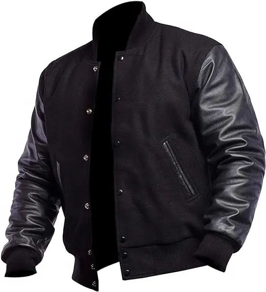 Veste de baseball varsity personnalisée OEM avec manches en cuir, saison hivernale, vêtement parfait