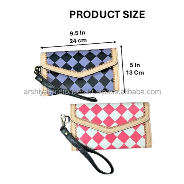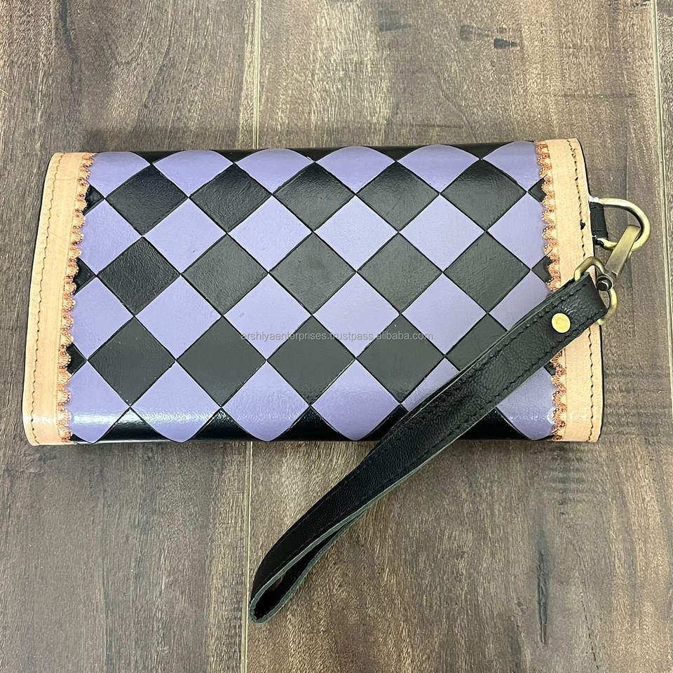 Product name:Hand Tooled Checkered Leather Wristlet Wallet