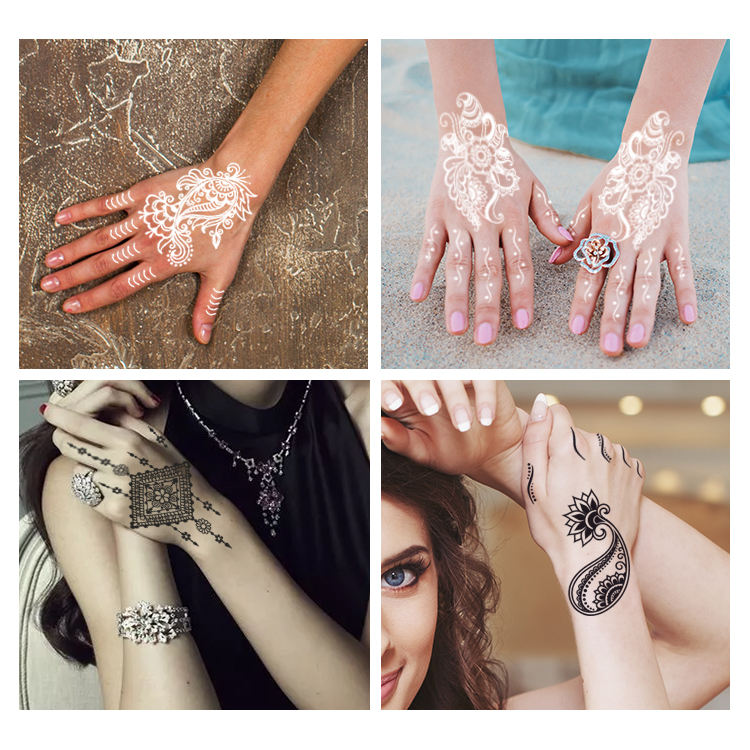 Pochoir autocollant personnalisé OEM pour tatouage temporaire au henné Papier de tatouage à la main de luxe Autocollants de tatouage semi-permanents étanches