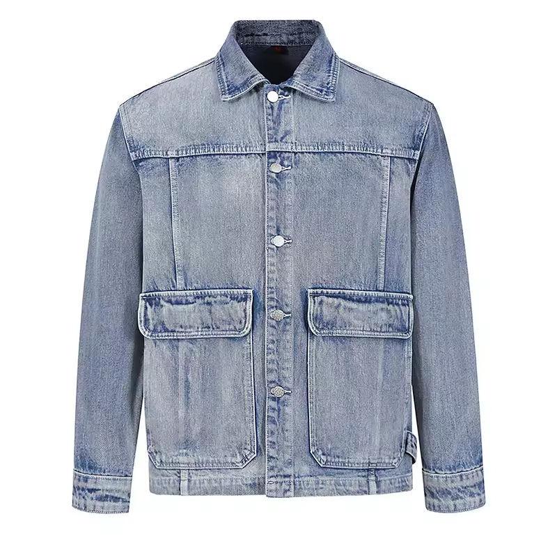 Veste en jean pour homme sur mesure OEM, veste en coton foncé délavée, décoration à boutons, veste d'hiver unisexe surdimensionnée
