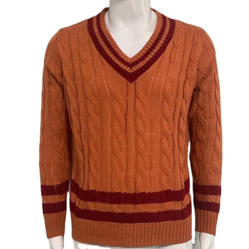 Pull en laine/cachemire respirant anti-boulochage à col en V pour homme, personnalisé avec logo OEM & ODM, idéal pour l'hiver