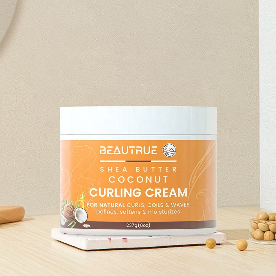 Crème coiffante vegan à la noix de coco personnalisée OEM/ODM avec beurre de karité pour cheveux naturels, allonge les boucles, hydrate