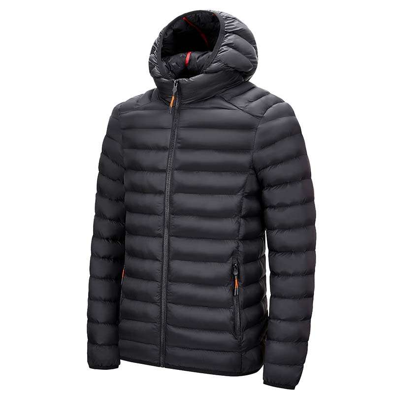 Vestes matelassées en duvet pour hommes, personnalisées OEM, chaudes, à capuche amovible, pliables dans un sac