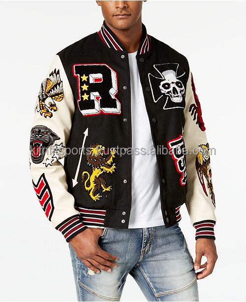 Manteau de Baseball personnalisé avec Logo OEM, veste d'université avec manches en cuir pour hommes