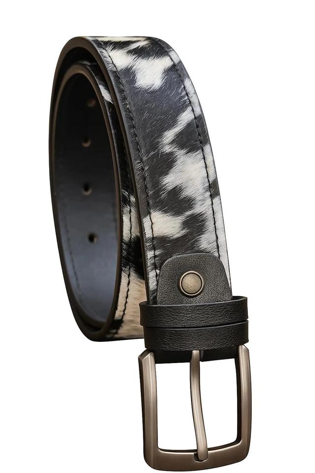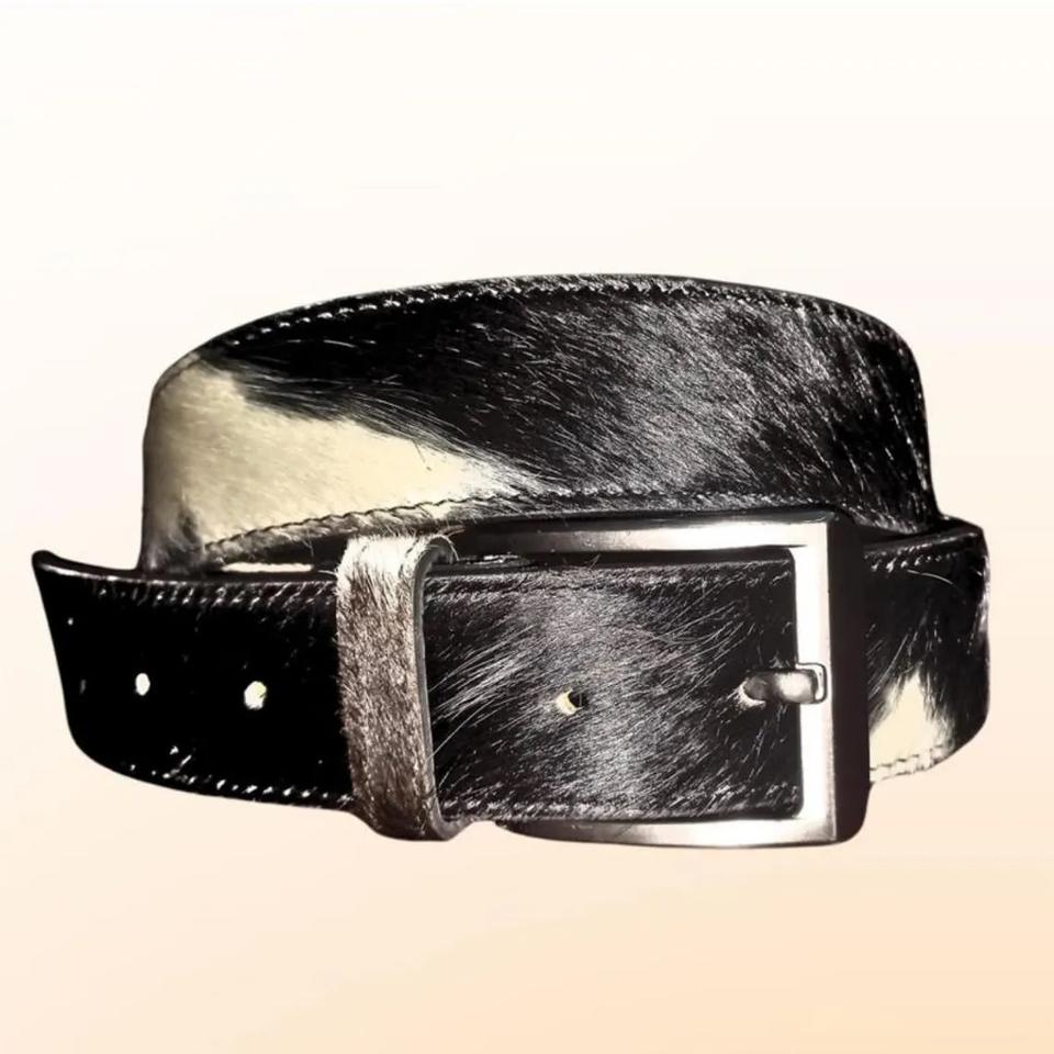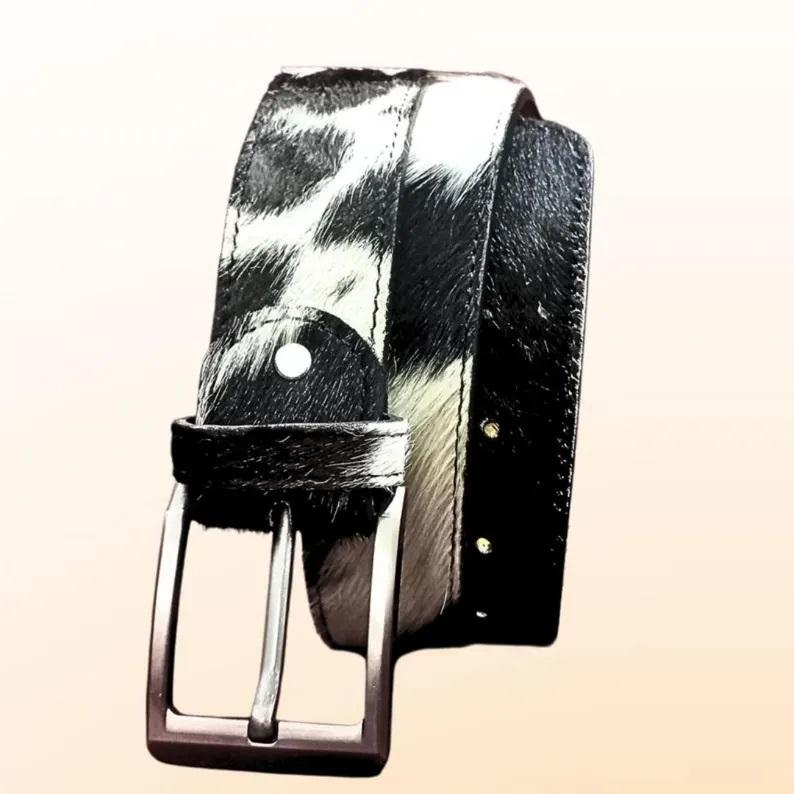Ceinture unisexe décontractée en cuir véritable de vache avec poils, boucle ardillon, haute résistance, durable, personnalisable OEM, marque privée