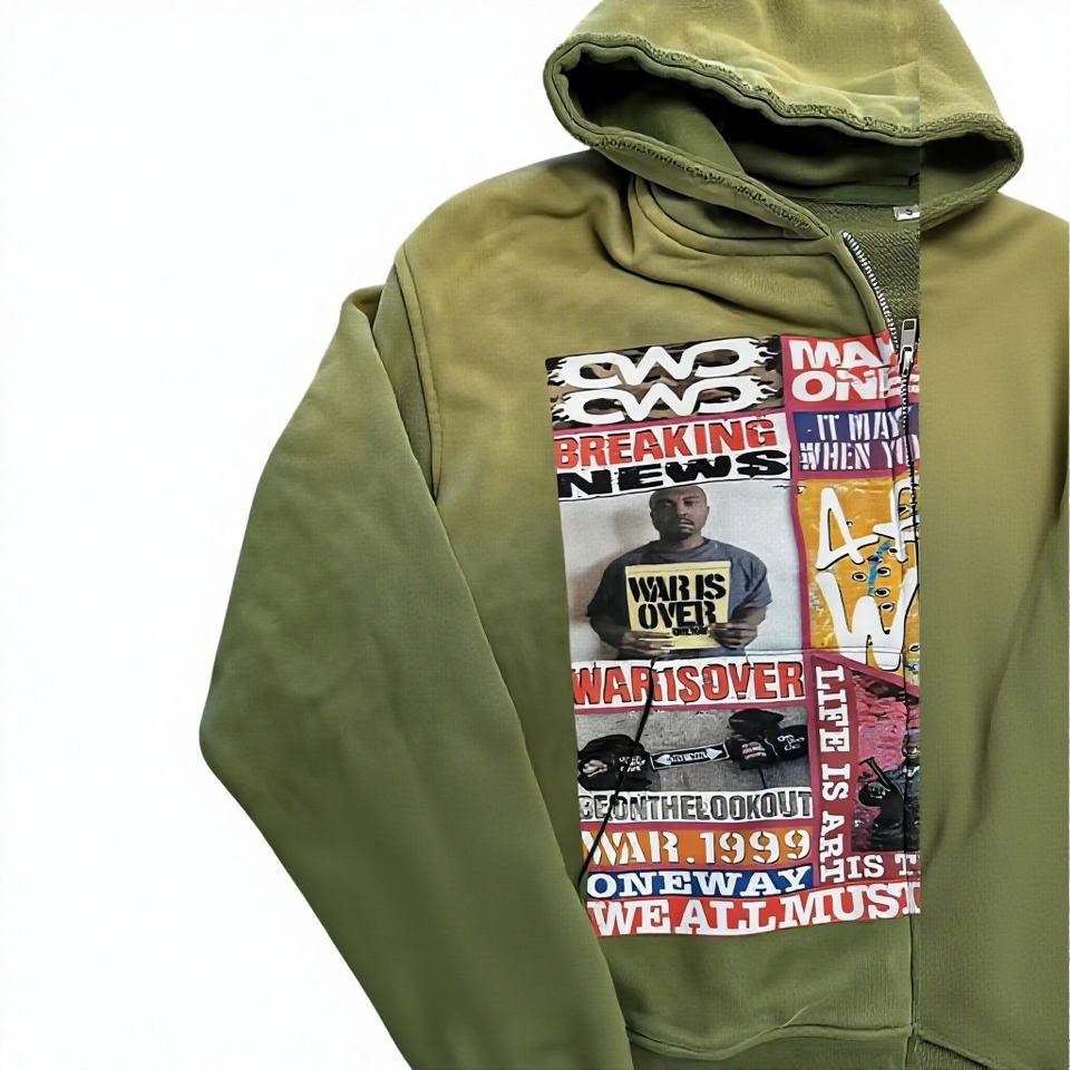 Service OEM personnalisé – Sweat à capuche zippé pour homme, style hip-hop, avec broderie de patchs vieillis et strass, coupe oversize, en molleton, idéal pour l'hiver