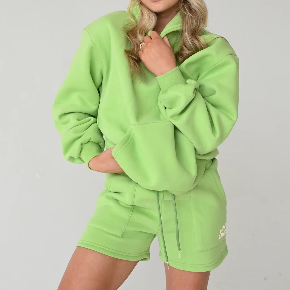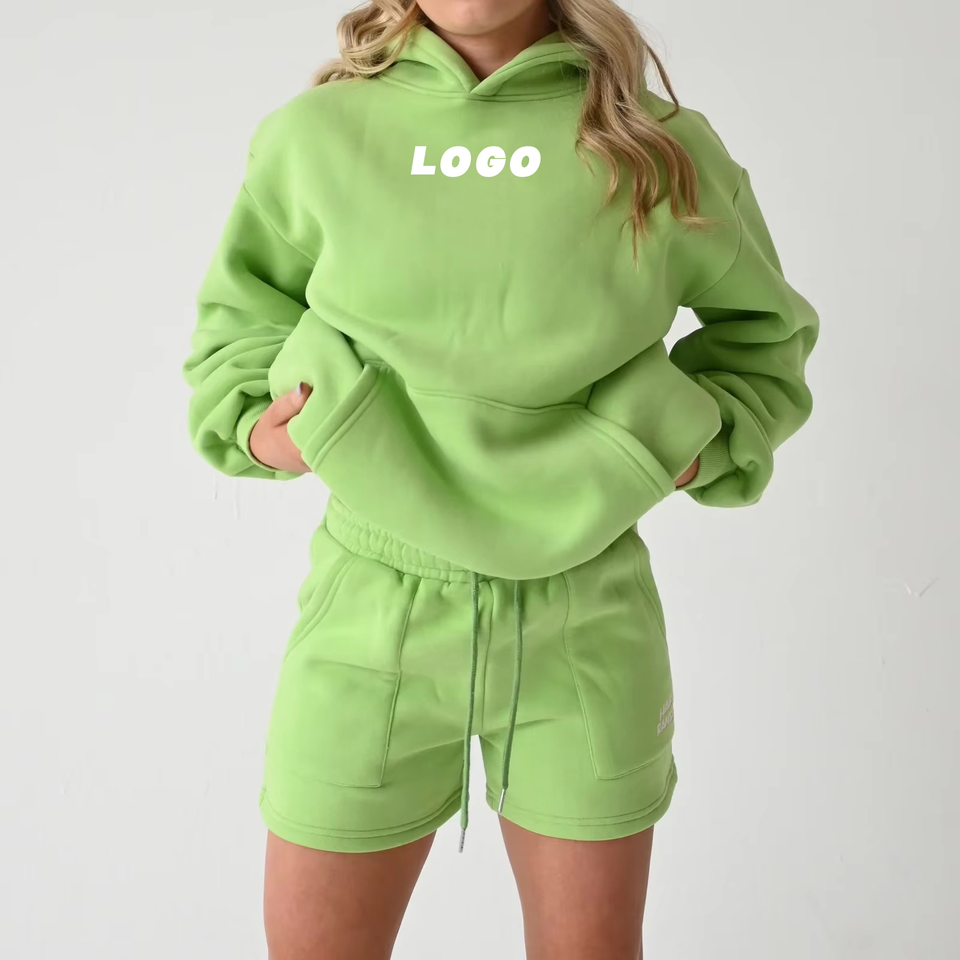 Custom OEM Winter Streetwear Blank Casual Print Oversized Women's Solid Color Green Hoodie Set Badge 100% Cotton Manufacturers