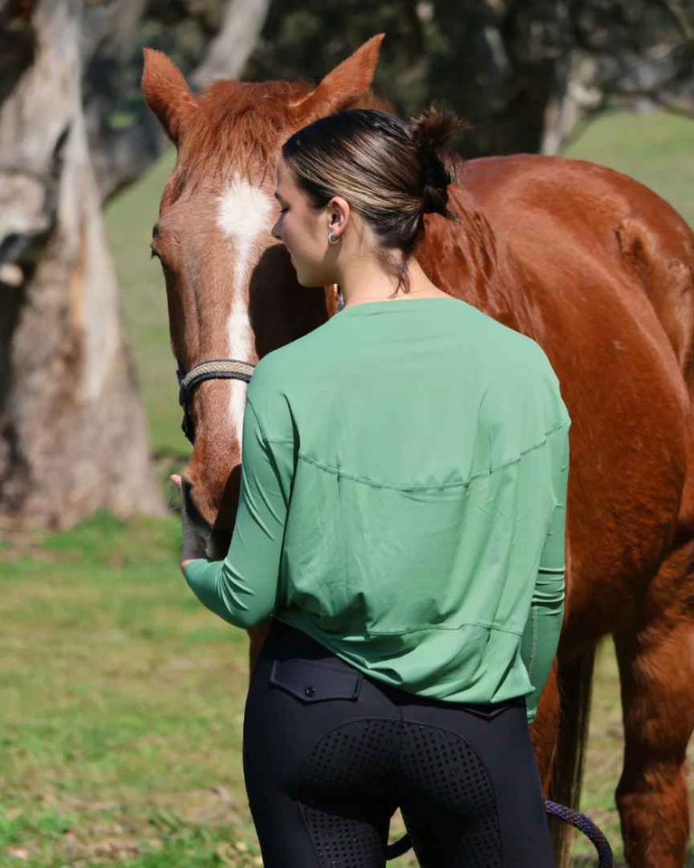 Haut d'équitation personnalisé OEM pour femmes, respirant, à manches longues, en tissu extensible, vêtements d'équitation, hauts d'équitation