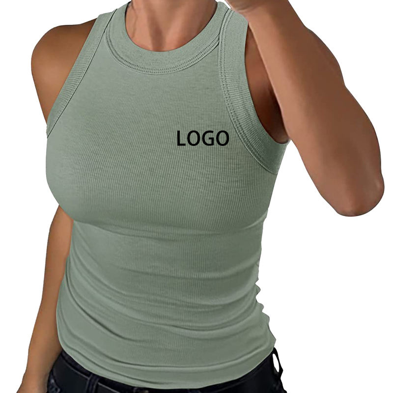 Débardeurs pour femmes OEM personnalisés été sans manches basique Top Shirt Slim Knit Ribbed Racerback Blouses
