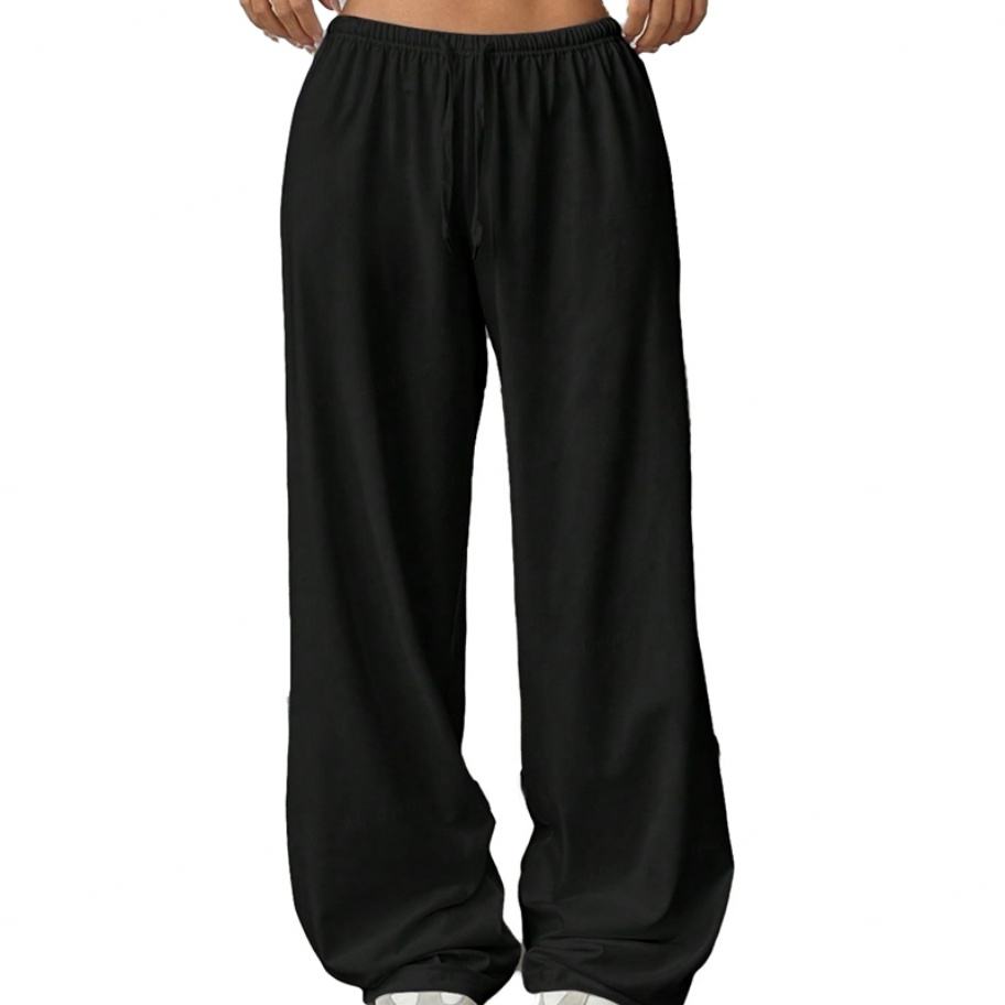 Pantalon large noir taille haute élastique, léger, anti-plis, couleur unie, longueur cheville, pour femme, personnalisé OEM