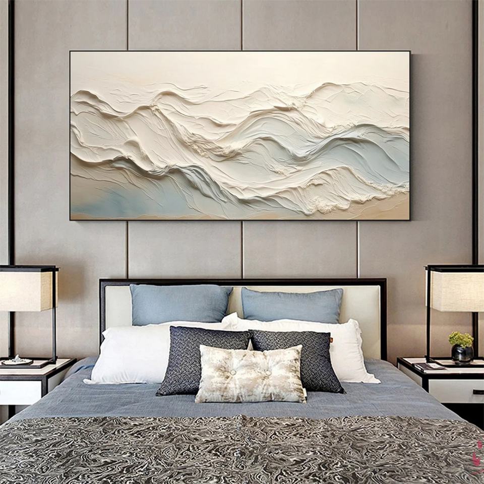 Peinture à l'huile abstraite texturée personnalisée « Échos de l'océan », décoration moderne, grande œuvre d'art murale texturée faite à la main pour salon et maison