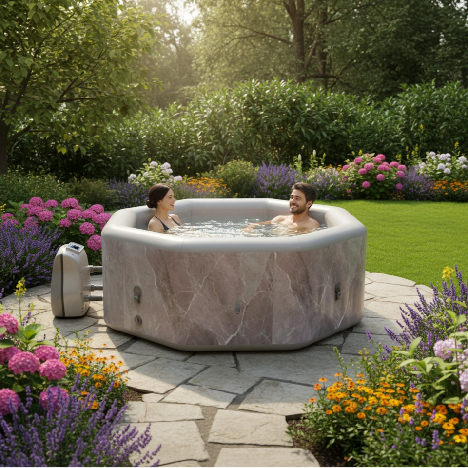 Spa gonflable octogonal personnalisé 190cm x 190cm x 70cm pour 5 personnes, en PVC laminé, piscine de massage extérieure hors sol avec pompe