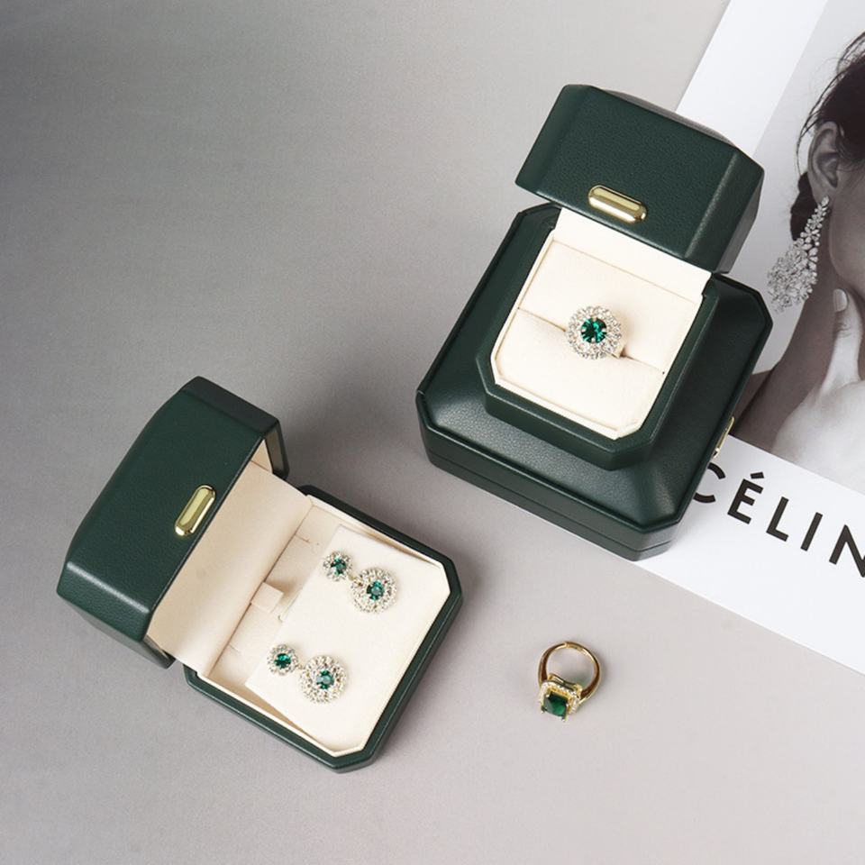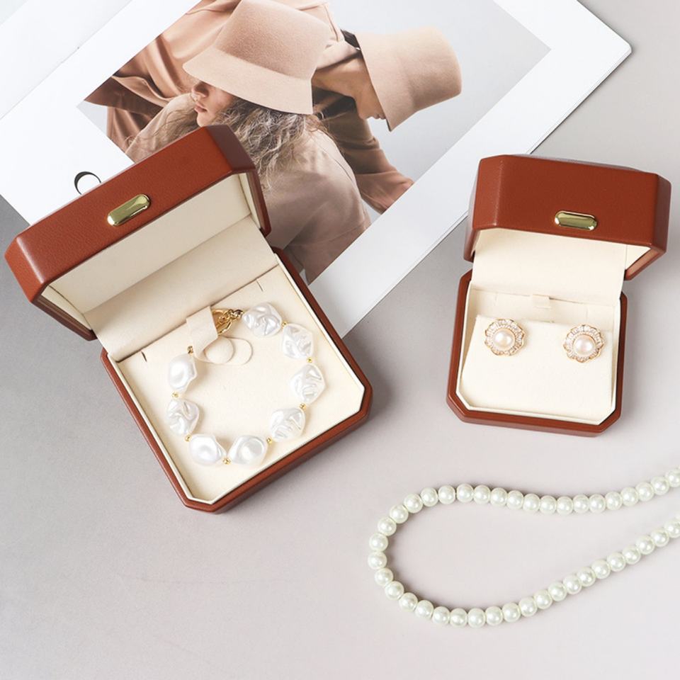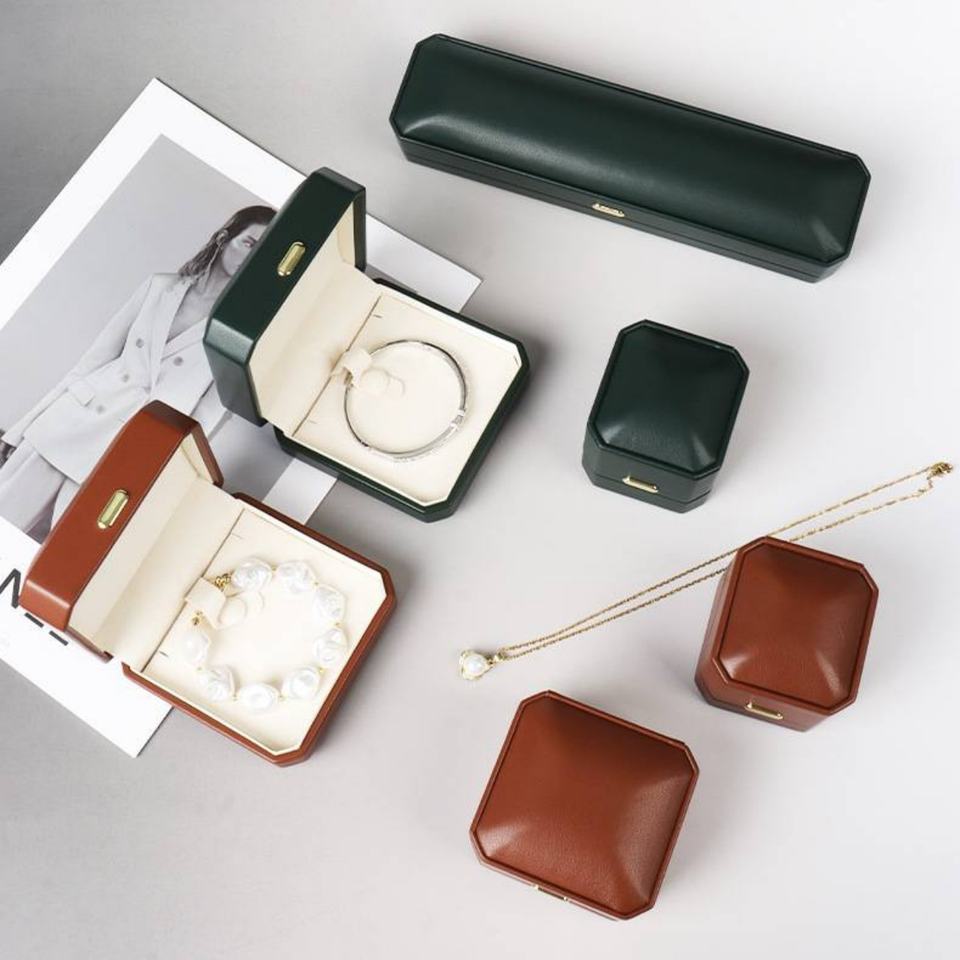 Boîtes à bijoux en cuir PU octogonales personnalisées, emballage de boîtes à bijoux haut de gamme, boîte à bijoux de luxe, logo personnalisé pour marque de bijoux