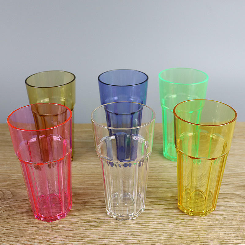 Tasse romaine octogonale personnalisée rince-bouche acrylique verres à vin en plastique transparent de couleur jus de bière