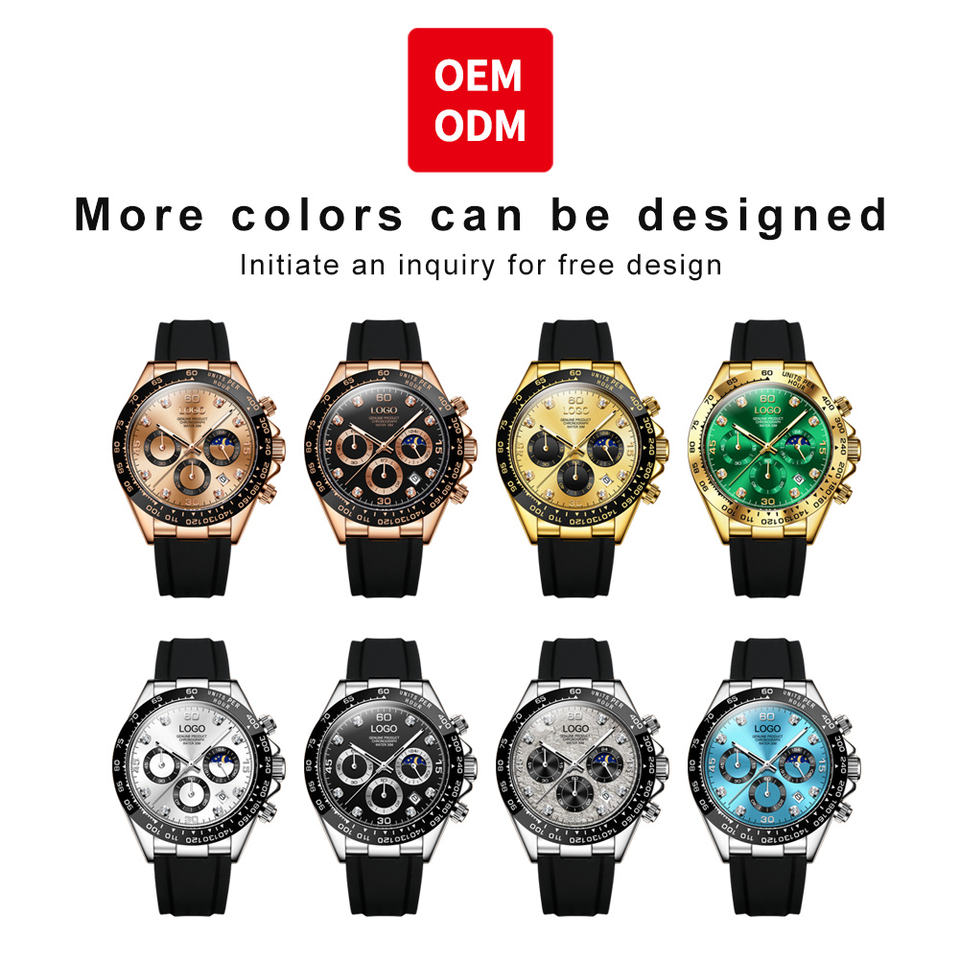 Montre personnalisée OEM 2875 Logo ODM, montre originale en silicone, sportive, multifonctionnelle, étanche, lumineuse, date, chronomètre, nouvelle montre de luxe à quartz