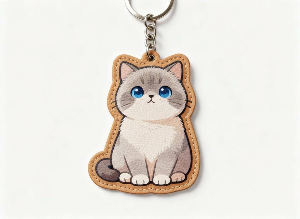 Porte-clés personnalisé en cuir PU à une face, impression UV de dessin animé, léger, tendance, élégant, promotionnel