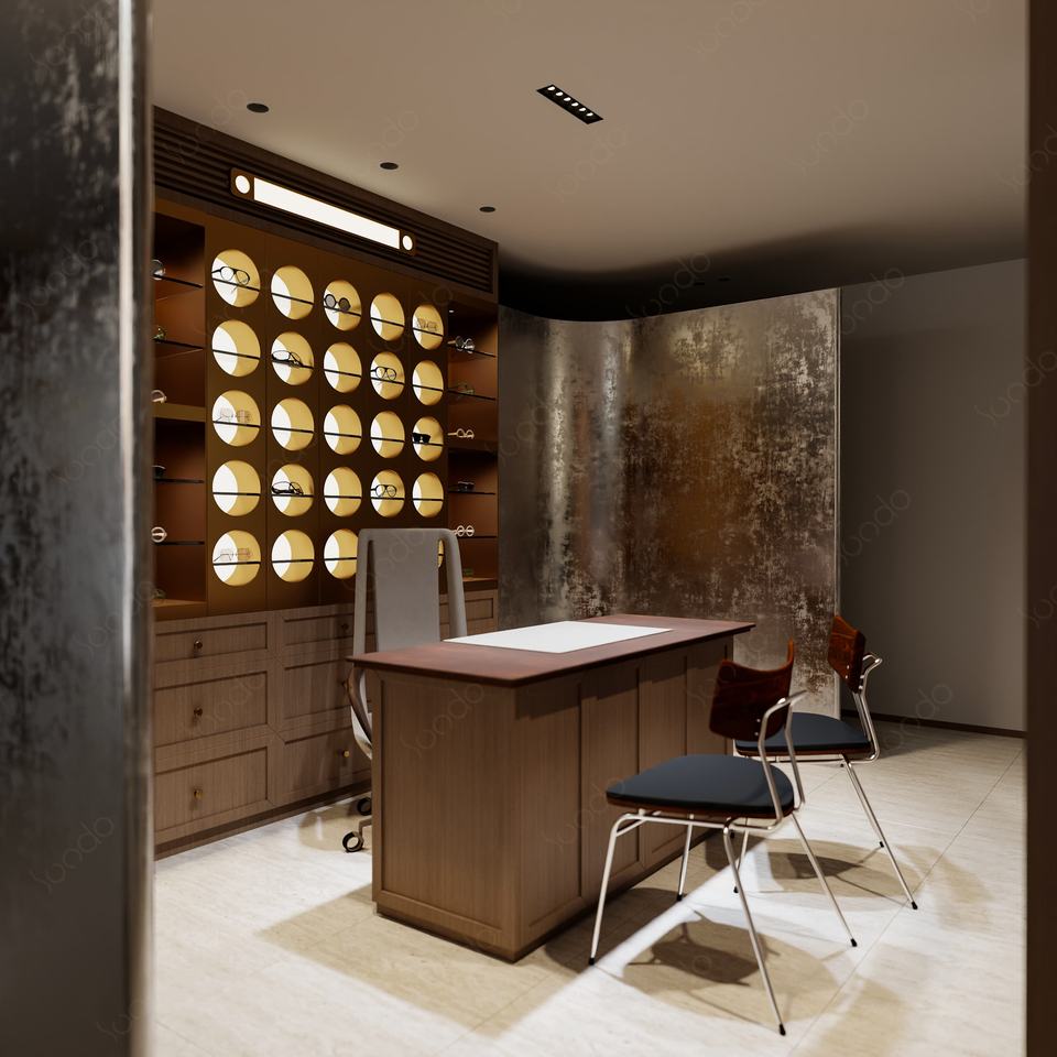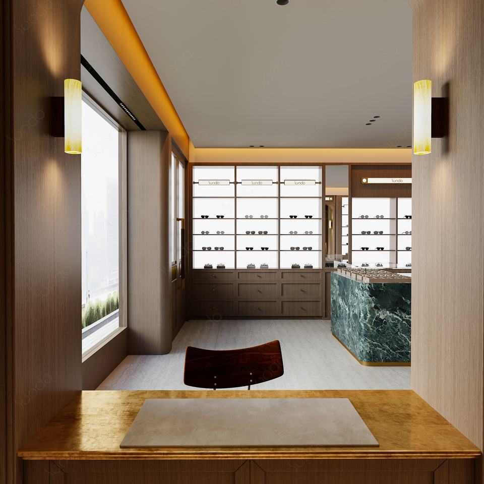 Conception personnalisée de présentoirs pour magasins d'optique, vitrine à lunettes, solution d'aménagement pour magasins de vente au détail d'optique, fabrication de mobilier optique